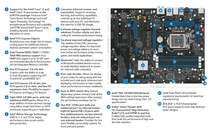 - Supports the Intel Core i7 and Intel Core i5 processors in the LGA1156 package